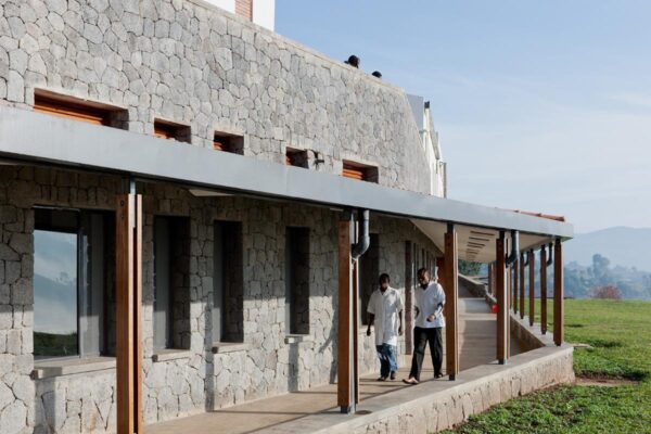 To improve airflow, wards are oriented toward the wind; windows open wide to draw fresh air through; high ceilings and clerestories lift hot air up and out. Corridors are placed outside the wards so that air and people move freely, reducing transmission. Courtyards bring light into daily care. And even the stone— volcanic rock from the surrounding hills, cut and laid by masons trained during construction— embodied the idea and need for the building to be of the place where it sits.